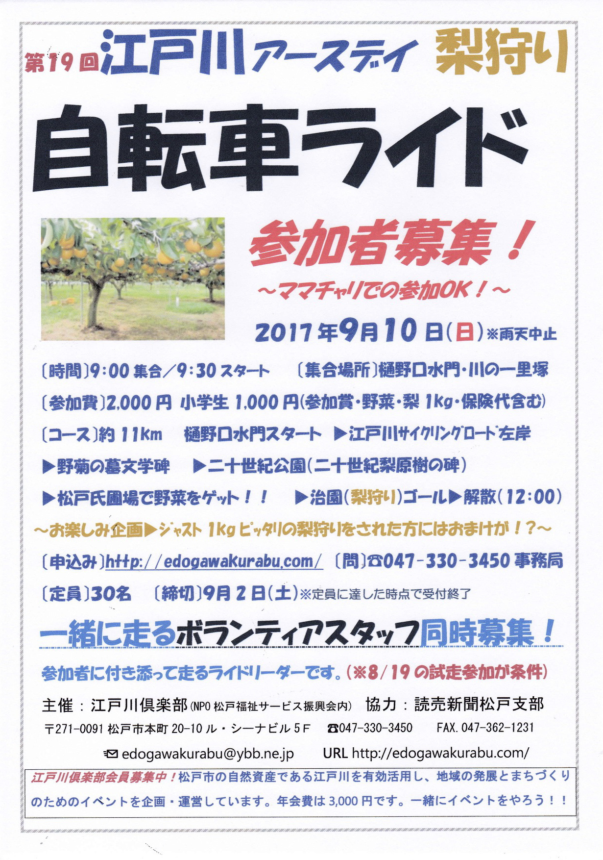 第23回「江戸川アースデイ自転車ライド梨狩り」の参加者募集を開始致します。
