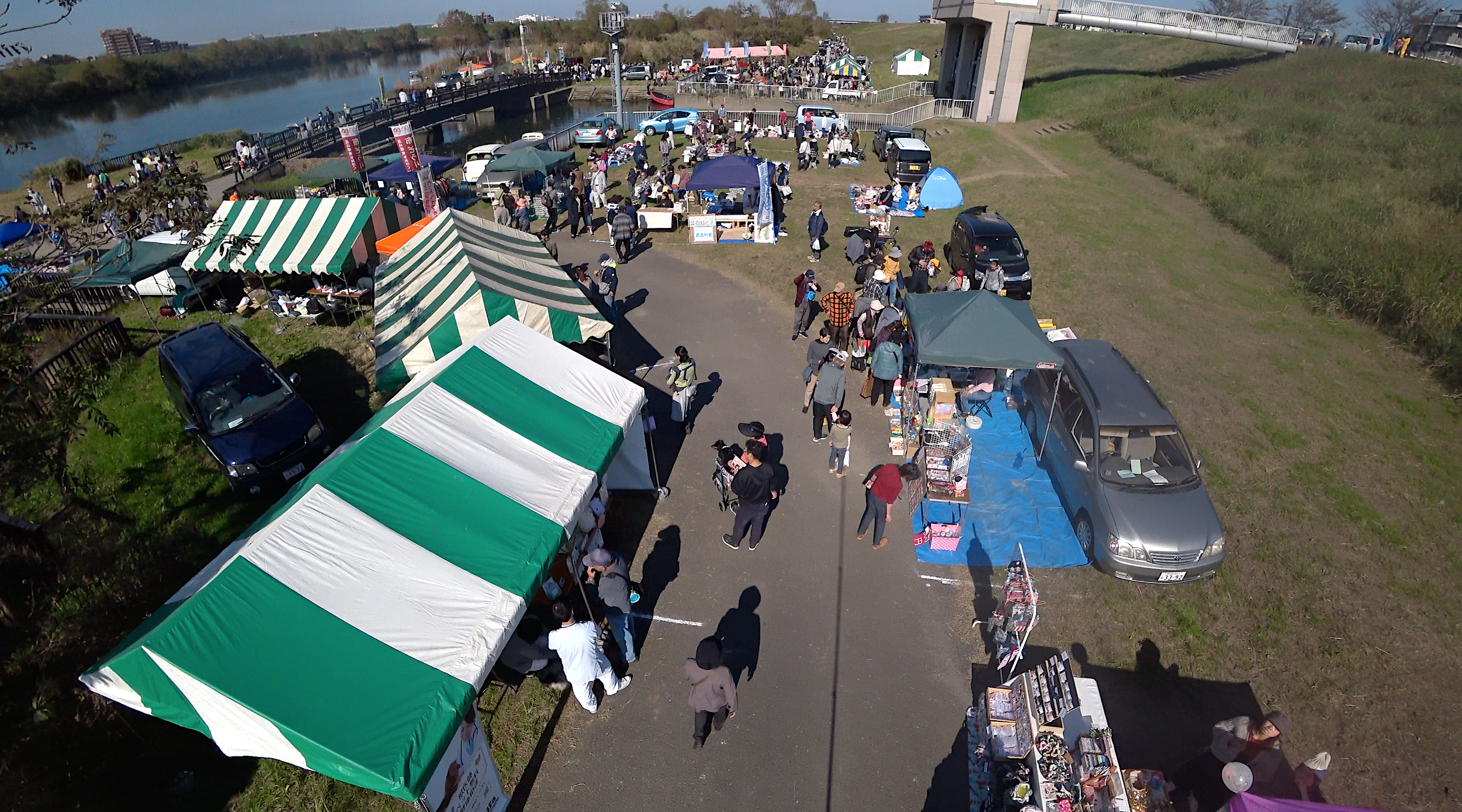 第26回 春の江戸川カッパ市の様子を江戸川上からズームにて撮影