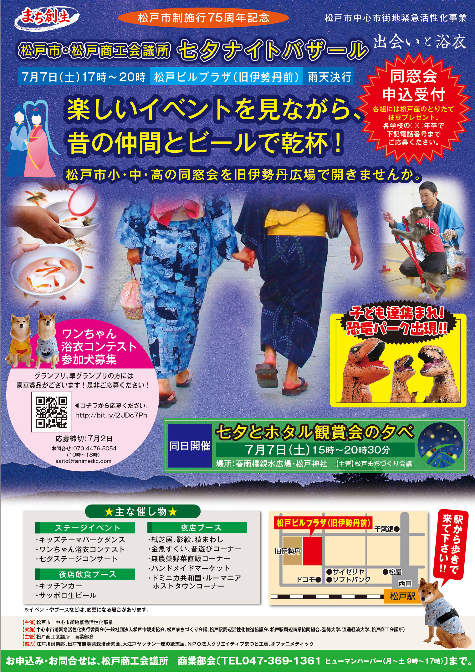 七夕ナイトバザール開催します!同窓会・ペット浴衣コンテストの参加者募集中です!みんなでカンパイ! |