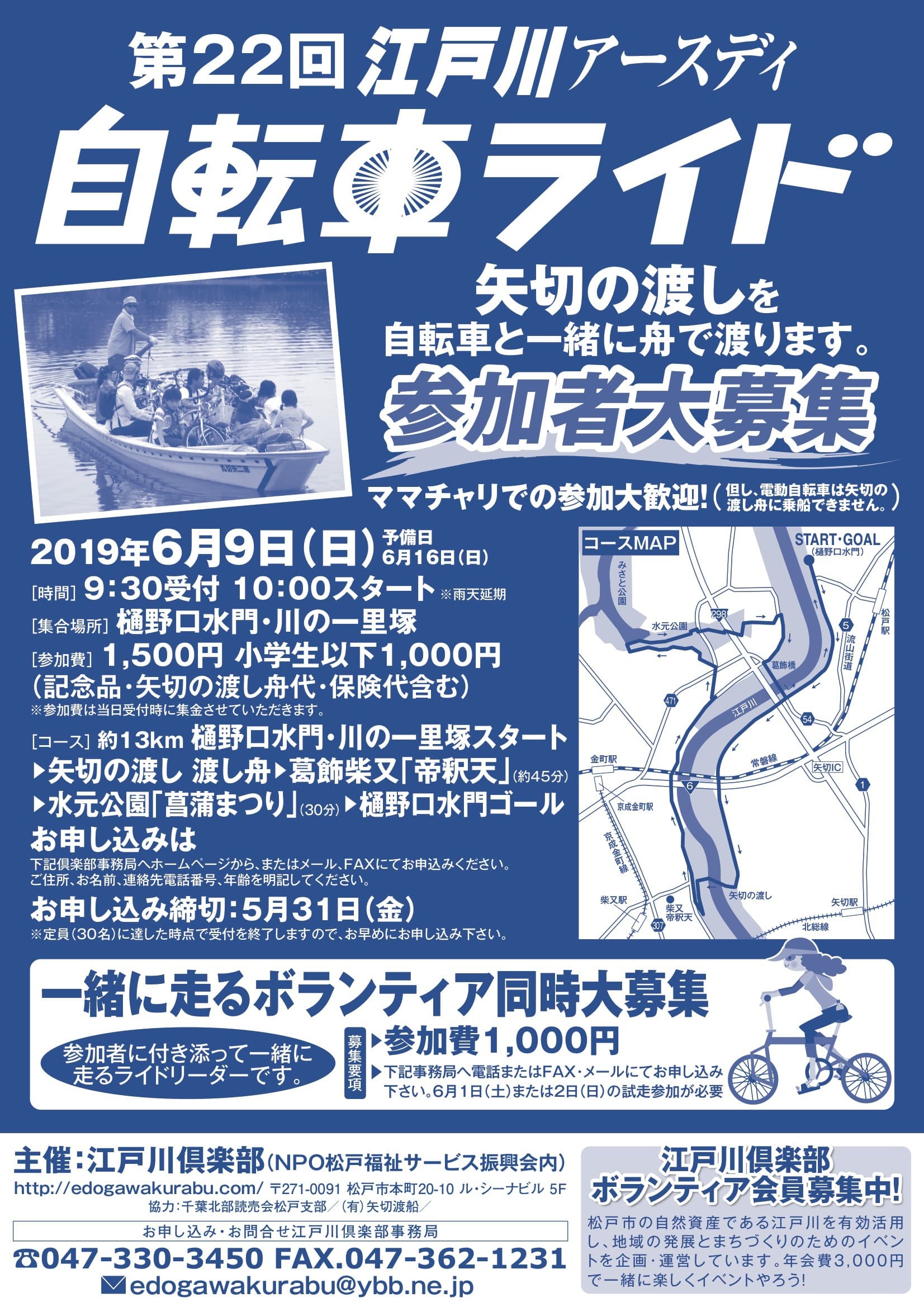 第22回「江戸川アースデイ自転車ライド」の参加者募集を開始致します。【募集締切】6月9日(月) 予備日6月16日(日) |